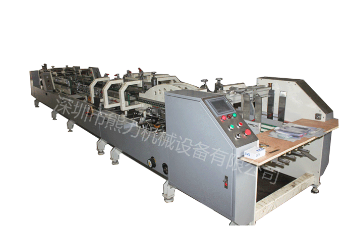 熊力自主研發(fā)的第五代膠盒機可以自動撕保護膜、自動上料、自動折邊、自動粘盒一體化的全自動膠盒機。